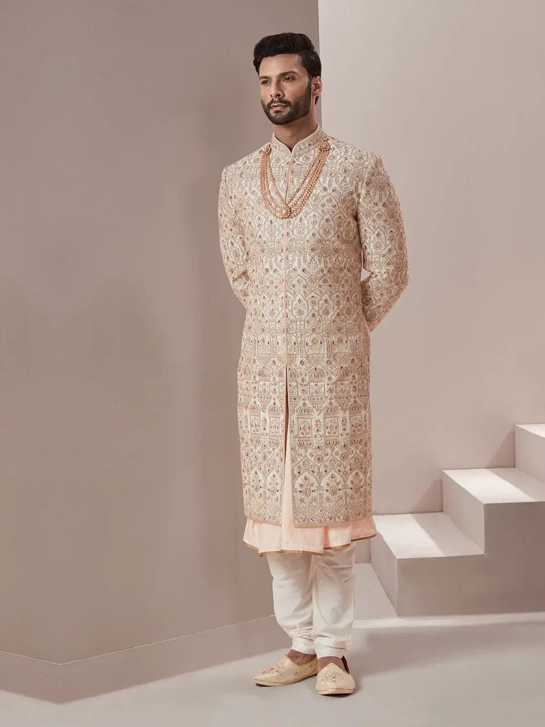 Heavy Silk Sherwani with a Touch of Pink